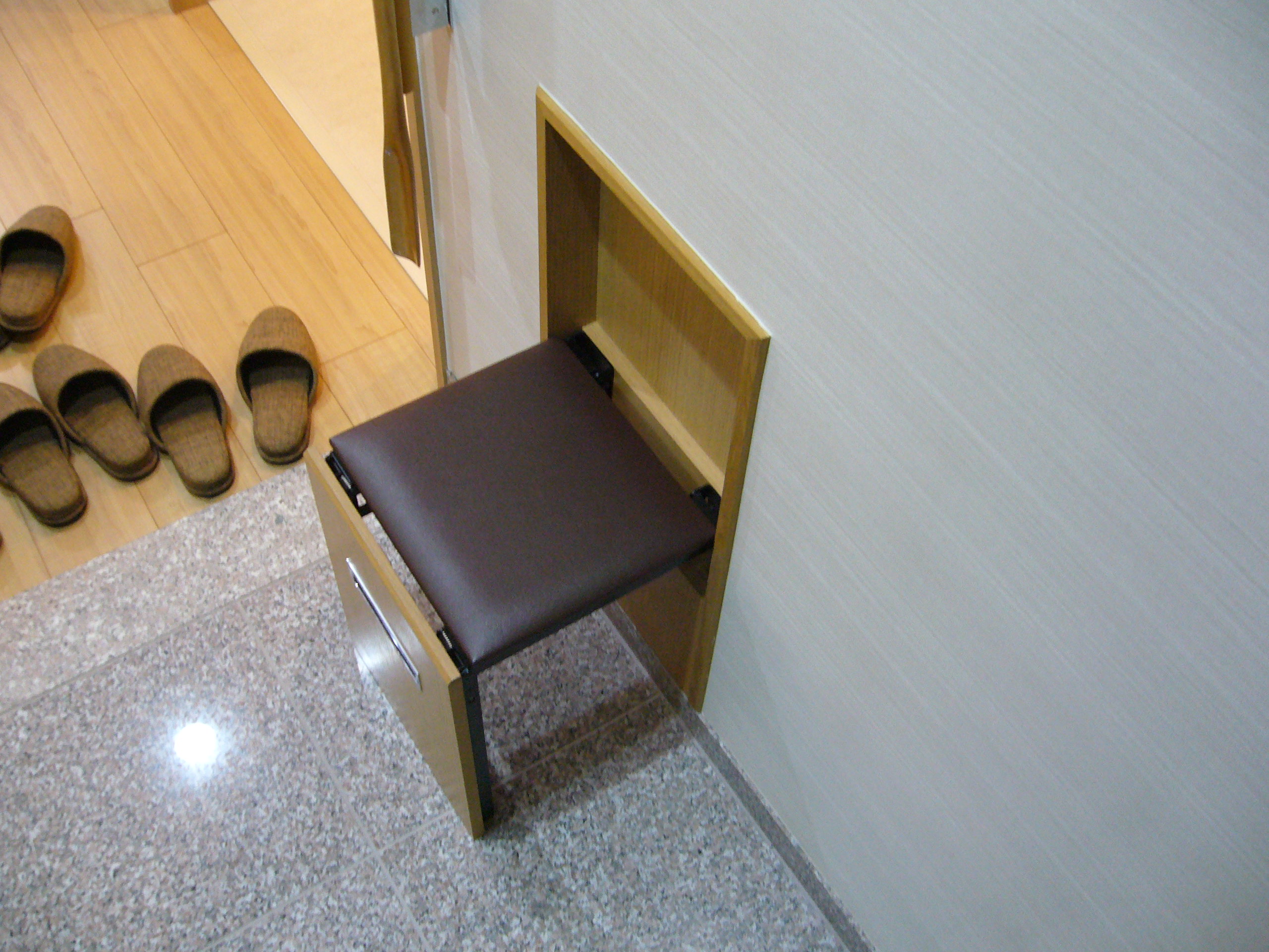 買い物から帰宅して歩き疲れたな~なんて時に座ったり、クツを履く際に利用ができるよう配慮が感じられるポイントです(*^^)b