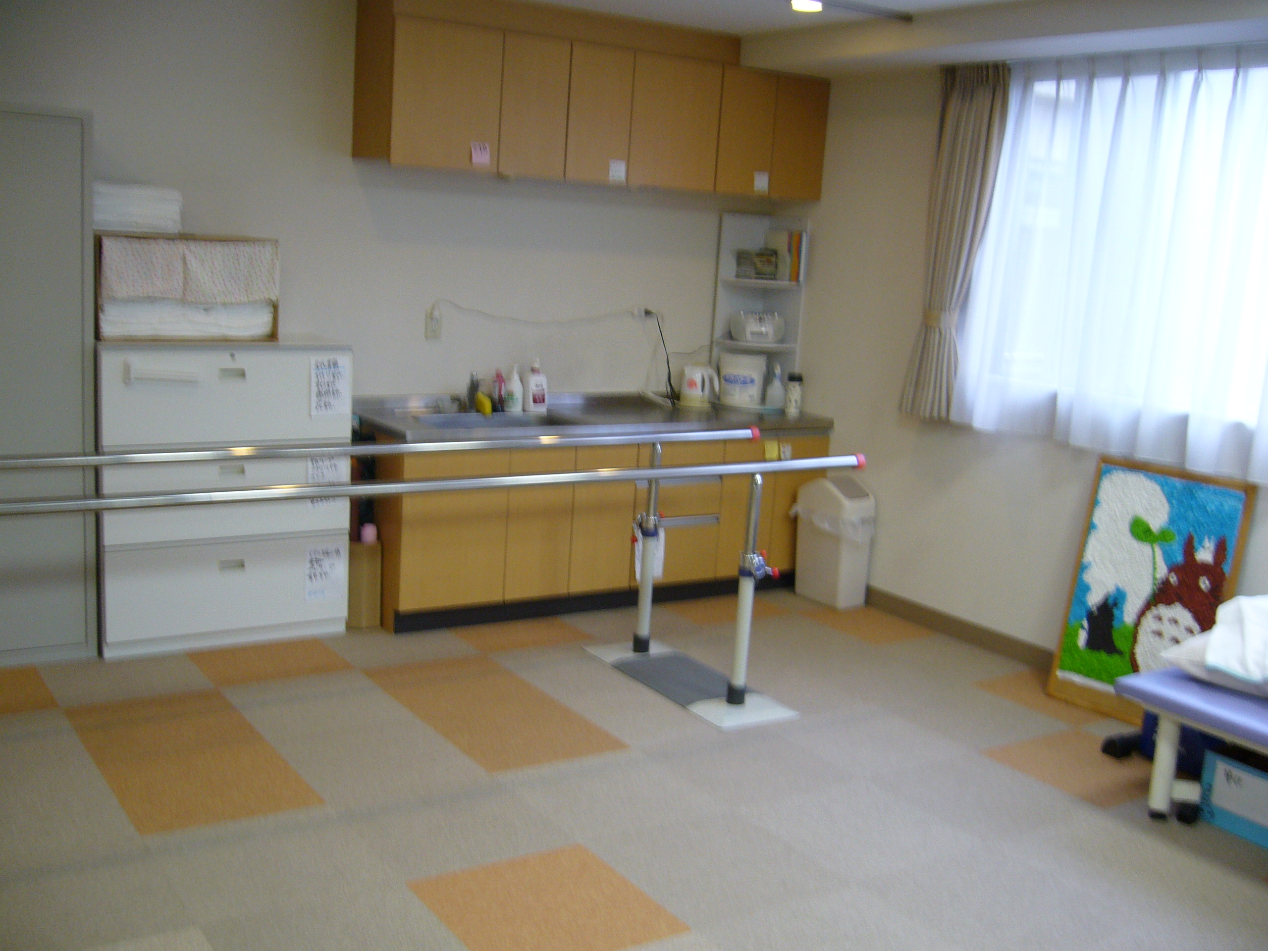 ※機能訓練室には平行棒(写真・右参照)もあり、ここに合わせたリハビリプログラムを作成♪