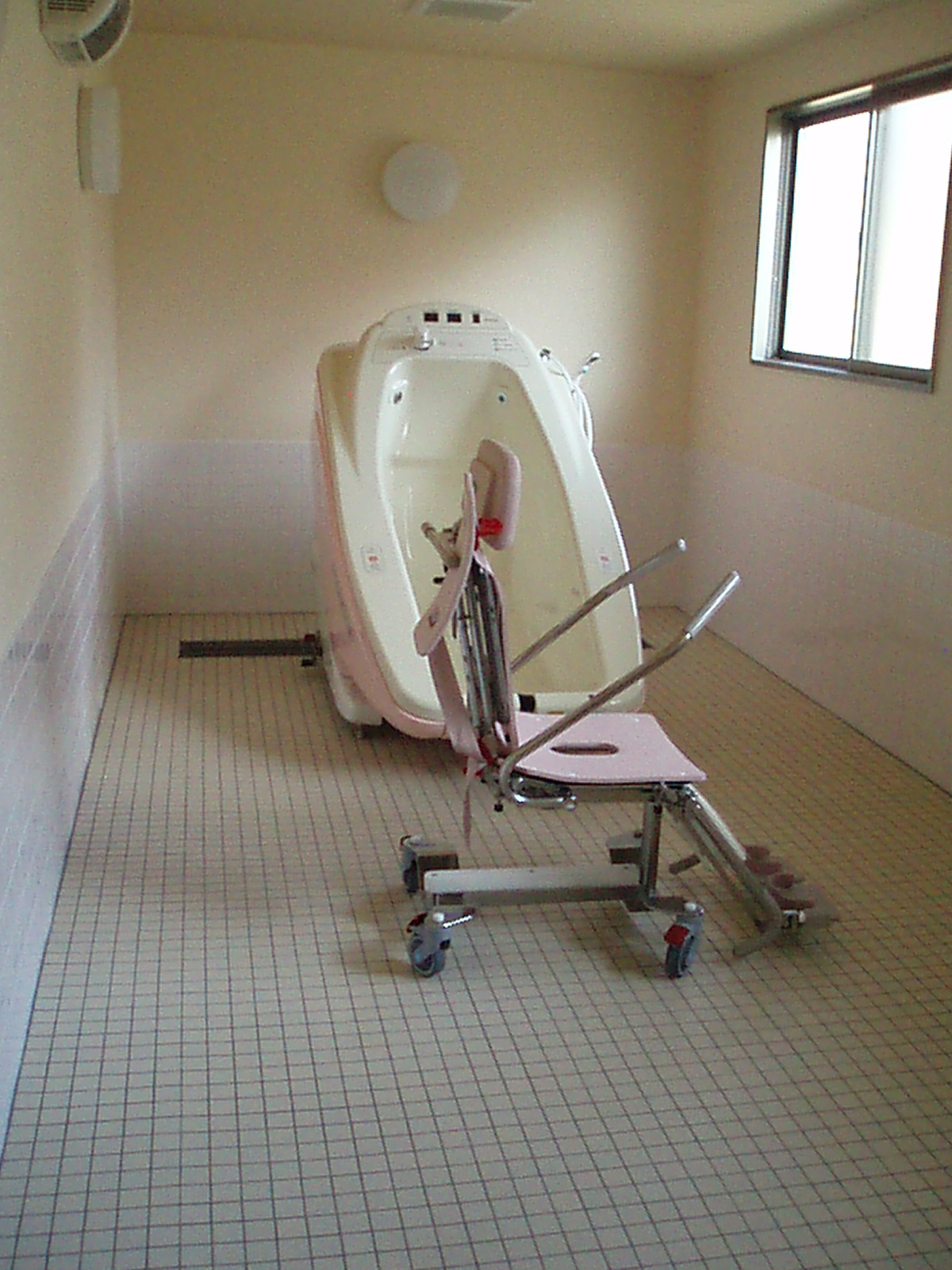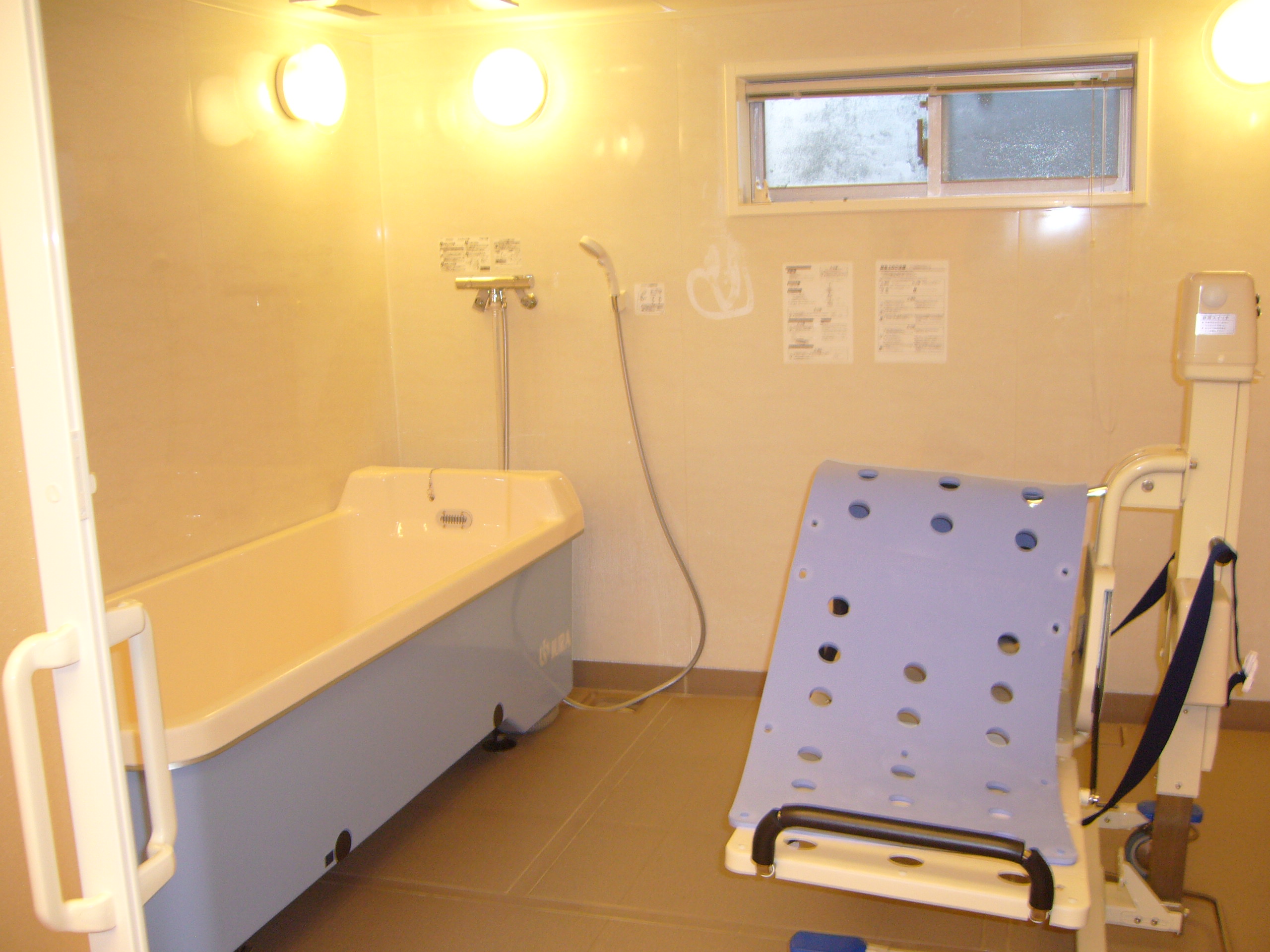 そんな時はヘルパーさんの手を借りながら、こちらの特殊浴室にての入浴も可能です(*^^)v